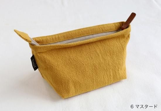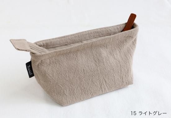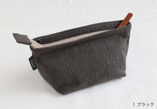 アトリエヌイのオリジナル生地「ウォッシュドコットン」で作ったポーチ。